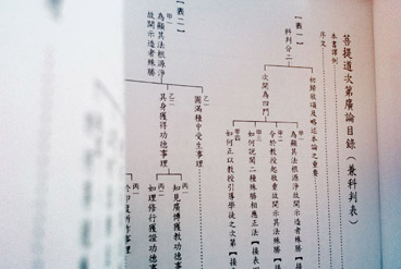 師父說:「科判這個名詞是專門在經論裡面的一個名詞,科就是科分、分類。根據他的內容,怎麼加以分類。」
